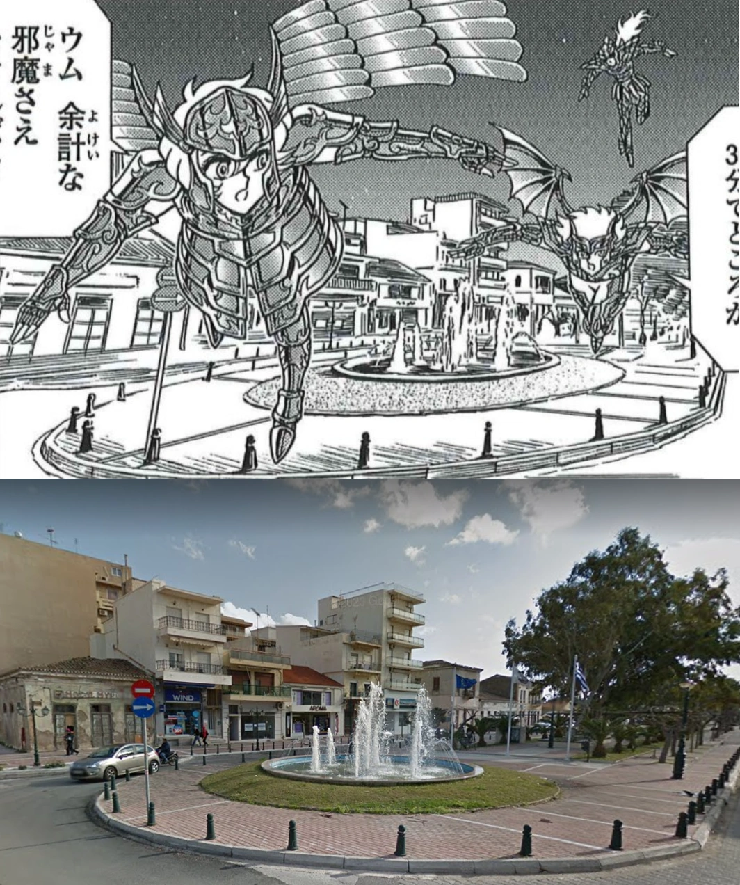 - Tsunakan Suda explicó en su cuenta de X (Twitter) que el pueblo con la calle y la fuente, por donde pasan los Generales, se encuentra en LavrioW, que está al norte de la ruta nacional 89 desde Cabo Sounion [1].