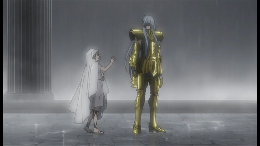 Más tarde en el luto por Albafica en el Santuario, ella acompaña a Shion para llorar por la pérdida del santo dorado de Piscis.