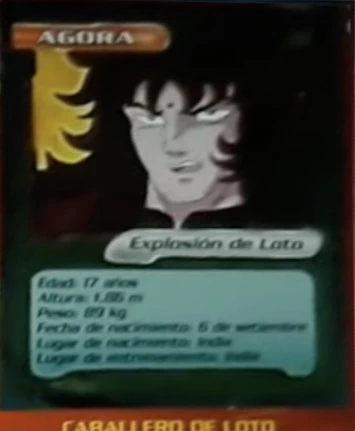 Agora (アゴラ, Agora) es el Silver Saints de la constelación de Lotus, junto a Shiva de Pavo Real son dos Saints dicípulos de Shaka de Virgo y que aparecen sólo en el Anime. Cree fervientemente que Shaka es un dios entre los hombres, y que sus palabras y órdenes nunca deben ser desobedecidas.
