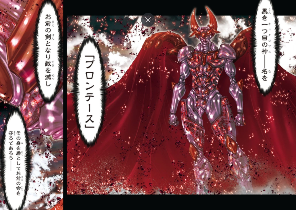 La Armadura de Brontes es una de las armaduras desconocidas entregadas por el dios Pontos a sus Kyklops.