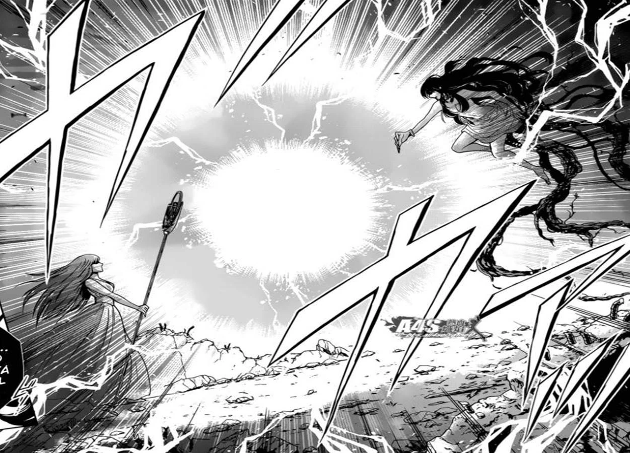 Tras esto Atë se dirige al campo de batalla plantando frente al Santo de Oro.