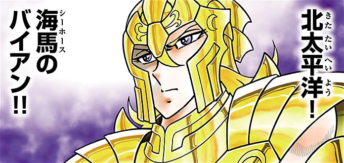 - ↑ Saint Seiya Final Edition: Volumen 10, pág. 239 (Seiya: ¡Sea Horse, tu verdadero poder no se compara en absoluto con el de los Gold Saints! シーホースおまえの実力などやはり黄金聖闘士の足元にも及ばない!)