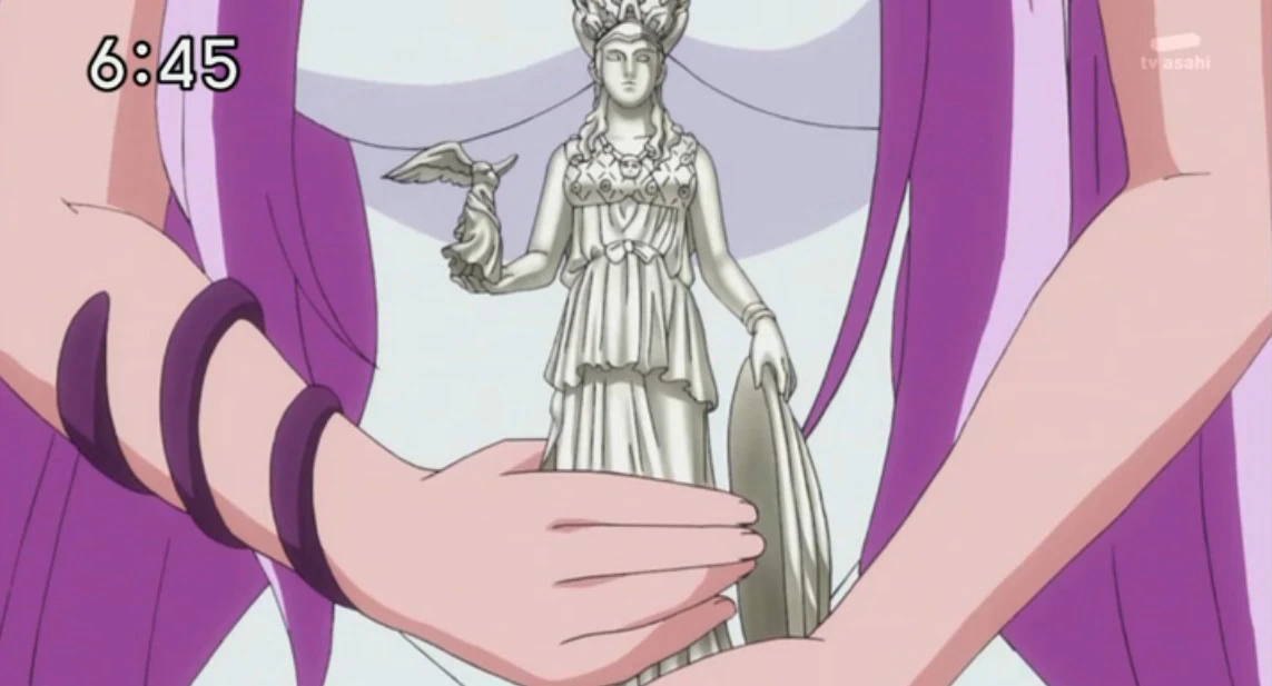 - Nike: La Diosa de la victoria, tomó la forma de un gran báculo el cual acompaña a la Diosa e igualmente forma parte de su armadura. Como tal, por medio de este báculo, la Diosa puede canalizar sus poderes e incluso atacar.