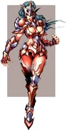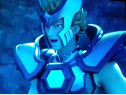 Cabe en destacar igualmente el diseño de las hombreras y la cintura varia entre las 2 versiones. A las hombreras redondeadas en el manga se le agregó una alargada en el anime y se removió el protector del antebrazo en el manga.