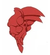 El casco de la armadura es una diadema, que rodea toda la cabeza, es más masivo en la frente y las siene, dejando dejando descubierta la nuca y la mayor parte del cráneo. Se sostiene en su lugar gracias a una banda de metal, plana y delgada, que parte de las orejas y cubre tres cuartas partes de la zona posterior de la cabeza, apretando lo suficiente para mantener la pieza en su lugar sin dejar que se caiga.