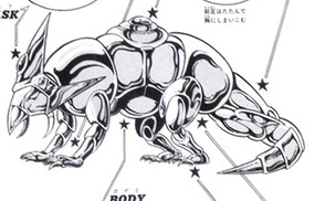 El object de la Cloth representa a un lagarto o por lo menos una especie de reptil en cuatro patas. La cabeza y el hocico están formado por la diadema, mientras que la mayor parte del cuerpo se compone de las hombreras, cinturón y pectoral. Los brazaletes conforman las patas delanteras y la cola, diviéndose en varias partes, mientras que las espinilleras y rodilleras forman las patas traseras.