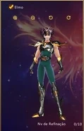- No posee constelación, ni ninguna clase de cuerpo celeste de donde pueda extraer su energía, pero esta hecha de oricalco y los demas materiales que la hacen ser una Cloth de rango Bronce o podría ser también que es de material de metal llamado bronce.