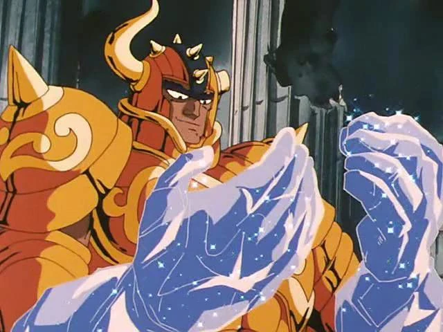 - Es la armadura de oro que menos cambios sufrió al pasar del manga al anime. Salvo por los detalles de los hombros y pecho, y dos pequeños cuernos extra en el casco la armadura es virtualmente idéntica a su versión del manga.