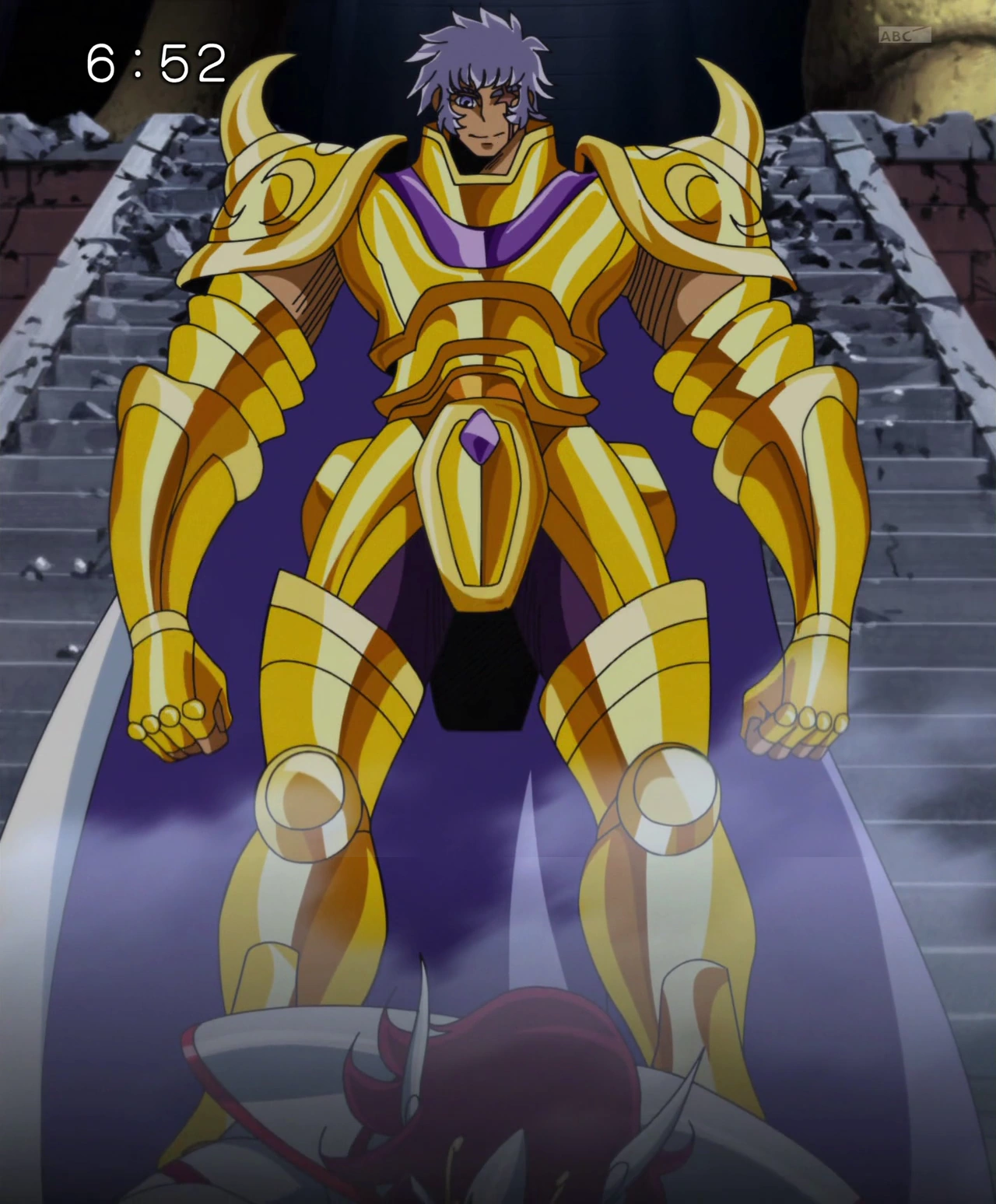 Cuerno roto y manos congeladas de la armadura de Tauro.