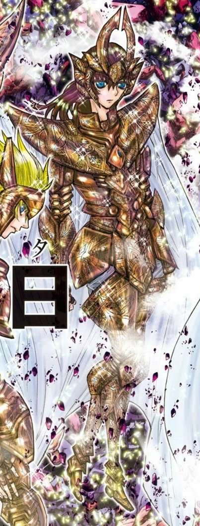- Es una de las dos únicas armaduras doradas en poseer alas, la otra es la de Sagitario.