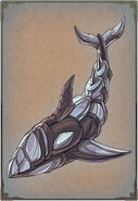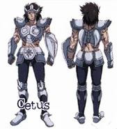 Esta armadura este diseño entres las versiones de la Cloth de Ballena del manga y anime son muy similares, esta versión es mas ancha y infladas en las hombreras con amplias con doble capa sobrepuesta, el pecho tiene placas sobrepuestos con un casco similar al del anime.