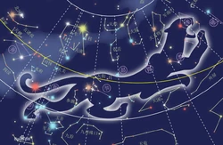 Virgo es la sexta constelación zodiacal y la segunda constelación, después de Hydra en cuando a superficie. Sin embargo, a excepción de su estrella más brillante, Spica, el resto tiene muy poca definición. Se representa con la figura de una muchacha alada superpuesta al ecuador, en su mayor parte situada al norte de la ecliíptica, aunque Spica, una estrella que indica la posición de la eclíptica, tiene una ubicación de 2º sur de este círculo. En el hemisferio sur, Virgo es una constelación de otoño, situada a 30º -40º norte del Centauro. Spica se encuentra más o menos en el tramo medio de un arco de 100º que se extiende entre otros dos indicadores de la ecliptica de primera magnitud: Antares (de escorpio) y Regulus (de Leo).