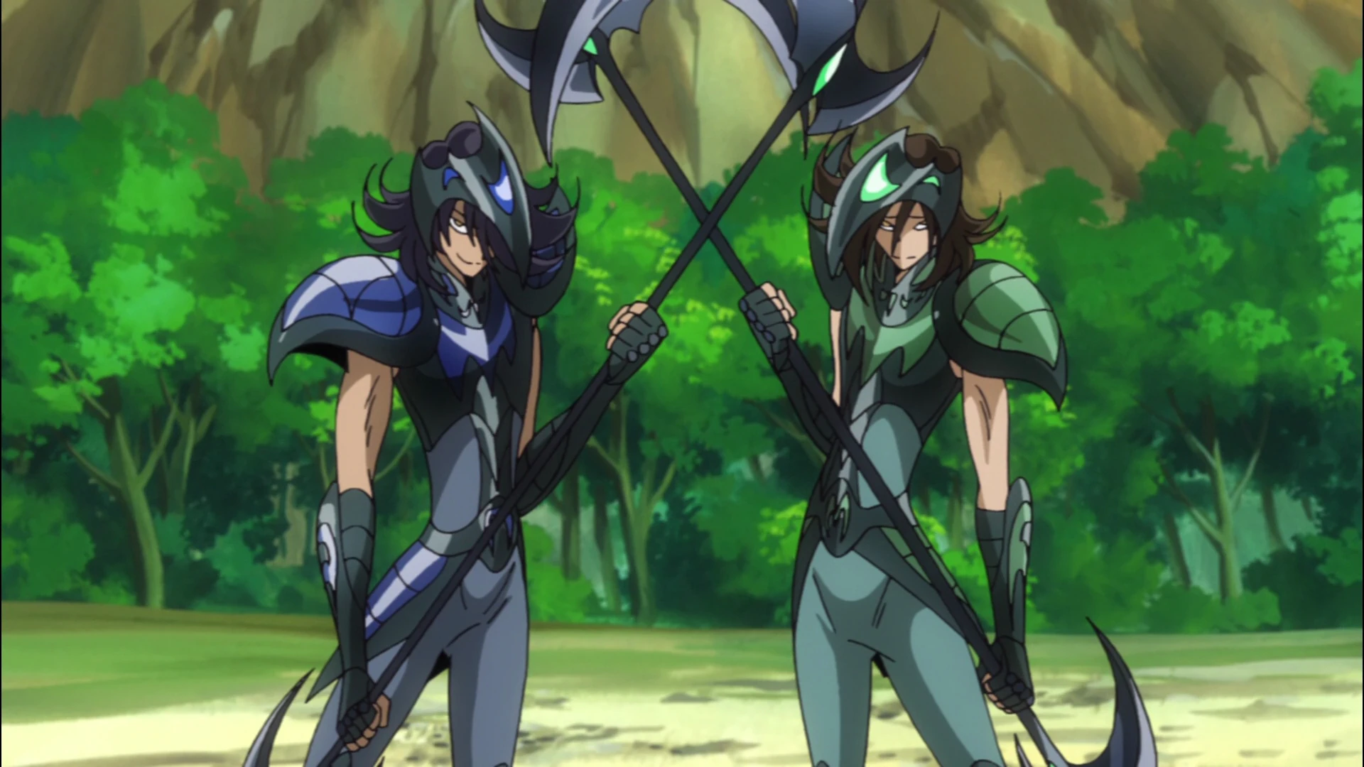 Durante la Batalla en Pallas Belda, los gemelos aparecen en el subsuelo de la ciudad, bloqueando el acceso al Castillo de Pallas, el grupo de Kōga se enfrentan a los Gemelos, sin embargo Subaru llega al campo de batalla vistiendo La Cloth de Caballo Menor, derrotando rápidamente a los Gemelos.