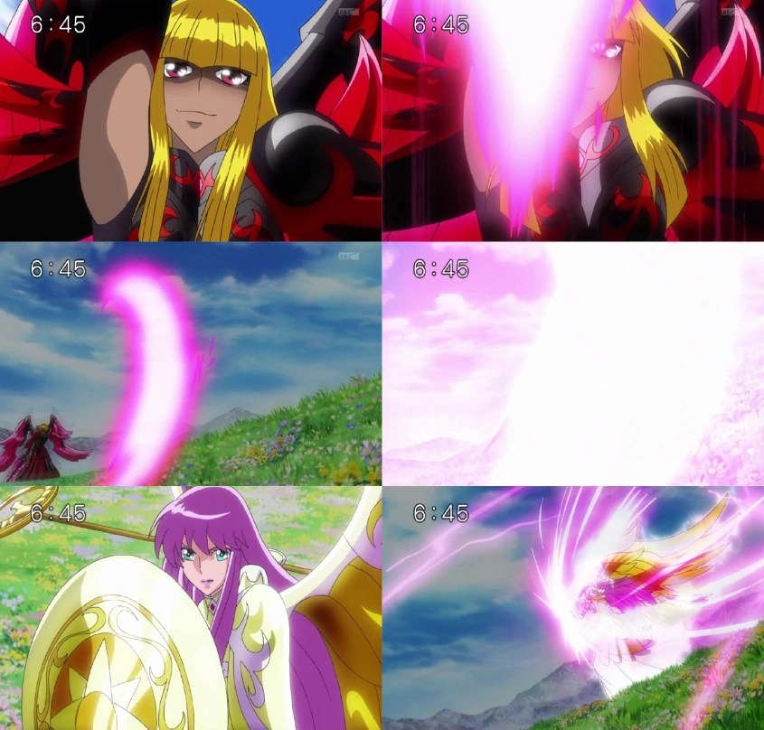- Esta arma puede disparar una onda cortante con suficiente potencia como para incluso herir a Seiya de Sagittarius, el cual se encontraba al máximo, destrozando la Cloth de Sagitario que cubría su cuerpo con facilidad a cada movimiento que hacía, los ataques también demuestran el poder distorsionar el tiempo y espacio en cada impacto que recibía.