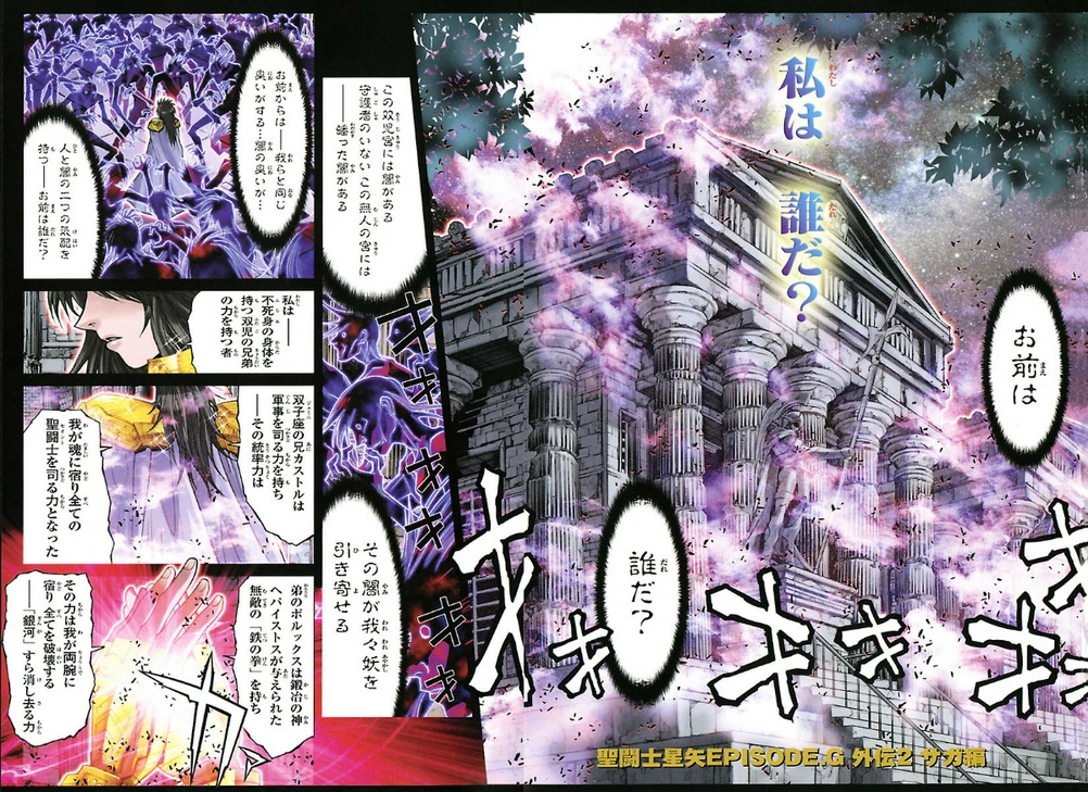 Cuando Saga aún es el Gold Saint de Gemini, es acosado por la oscuridad a cada momento. Unos espíritus malignos intentan corromper al guerrero pero este se encarga de eliminarlos a todos. Aunque persiste con su duda de si está con el bien o con el mal.