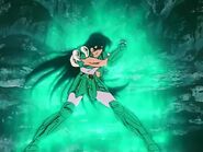 Shiryū continúa atacando a Deathmask, pero son inútiles, debido a que la armadura de oro lo protege. Shiryū de Dragon está a punto de caer al mundo de los muertos y Deathmask se acerca a empujarlo aún más. Sin embargo Shiryū hace un último intento y ataca la pierna de su enemigo. El golpe surte efecto debido a que la parte de la Armadura de Cáncer que cubre la pierna se retira por sí sola. A continuación, las demás partes de la armadura que se niega a proteger a alguien tan malvado abandonan a Deathmask, quien no puede creer lo que está pasando. Aun así se enfrenta cara a cara con Shiryū que con un Dragón Ascendente arroja a Deathmask al agujero del mundo de los muertos. De esta manera, su espíritu regresa a la Casa de Cáncer, pero gracias al esfuerzo realizado, recupera la visión. El viejo maestro se comunica directamente al cosmos de Shiryū y le da la buena noticia de que Shunrei ha sobrevivido.