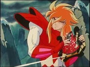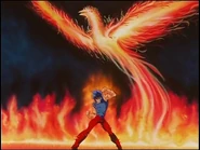 Mime, sabiendo la verdad, está furioso. Ikki le dice que la ha matado ha su propio padre. Mime lleno de odio ataca a Ikki con su Requiem de Cuerdas y con éste atado empieza su melodía. Ikki eleva su cosmos y en el aire Ikki ataca a Mime con sus Alas Ardientes del Fénix. El arpa de Mime se rompe y éste cae en el suelo. Mime se quita la armadura y decide atacar a Ikki con todo su poder. Ambos se atacan. Mime antes de morir le dice al fénix que si volviera a nacer le gustaría ser su amigo. Ikki le ordena a Shun irse con el Zafiro de Odín y luego cae en el piso.