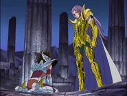 - Cuando Saori se despierta, quién aparece en frente de ella se cree que es Cronos devido que tiene una Hoz.