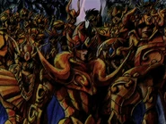 En los Cinco Picos, Dohko tiene una visión en la que Athena es decapitada por Hades. En ese momento se da cuenta que al final ha llegado el día en que Hades y sus 108 Espectros volverán a la Tierra.