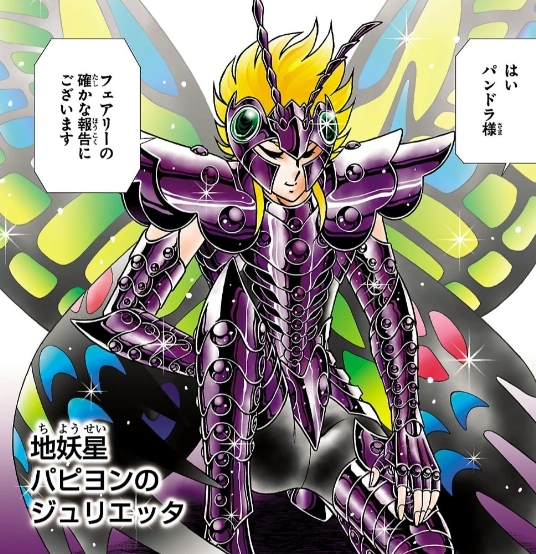 Giulietta de Papillon (ジュリエッタデパピヨン, Papiyon no Jurietta) de la Estrella Terrestre del Encantamiento (地妖星, Chiyōsei) es uno de los 108 Specters del ejército de Hades, dios del Inframundo.