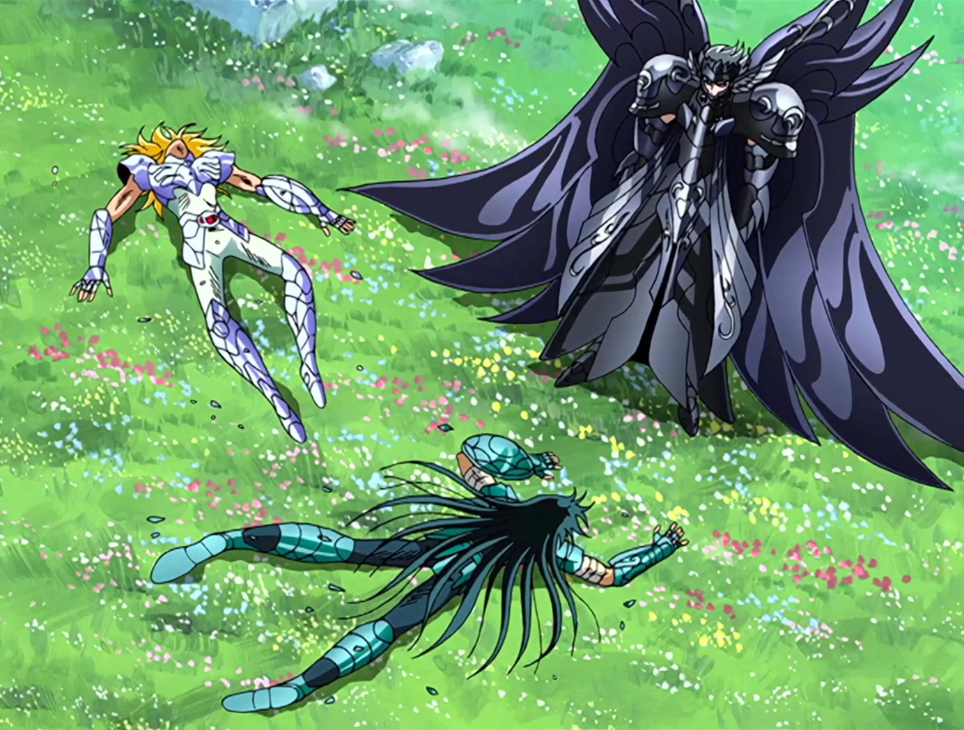Hyōga, Seiya y Shiryu vs Poseidon