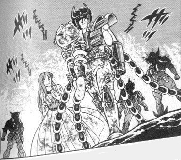 (Para Kōga sobre las Cloth) "¿Están pesadas, Pegaso?¿Puedes sentir el peso de las almas contenidas en esas piedras?"