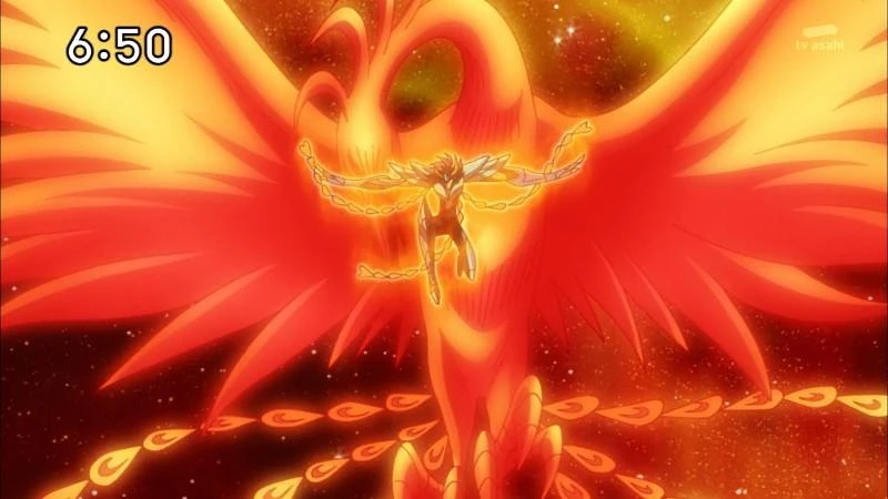 El Saint de Phoenix esta preparado para morir y llevarse consigo a Aegaeon, confiándole el futuro a los jóvenes Saints ya que ellos podrán despertar el Omega, un cosmos legendario que solo los dioses poseen. Por su parte Aegeon reconoce la gran fuerza de los humanos y su poder para hacer milagros, considerándolo "Interesante". Ikki y Aegaeon encienden todavía más sus cosmos y se atacan mutuamente con un último golpe, sus cosmos estallan y chocan, provocando una gran explosión, muriendo Aegaeon.