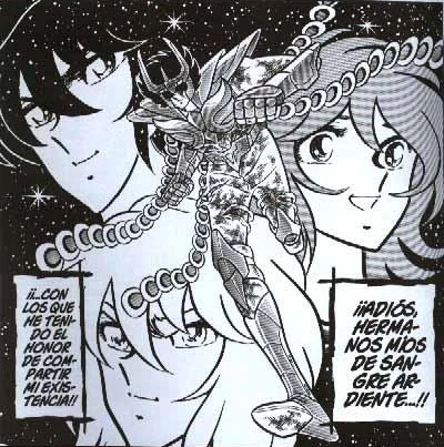 "Saints caídos en batalla...no tengo ni tumba ni flores para ustedes...Así que por lo menos descansen en paz con sus Cloth."