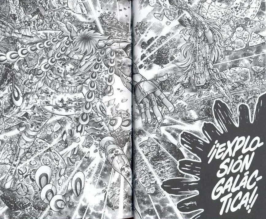 Manga: Debido al empate, Saga decide usar su máxima técnica, la Explosión de Galaxias, logrando dejar bastante malherido a Ikki y que su cosmos retumbe en todo el santuario, pero Ikki aún no ha muerto y con sus últimas fuerzas protege a Seiya de una segunda Explosión de Galaxias, la cual en esta ocasión no deja más que polvo de la existencia de Ikki.