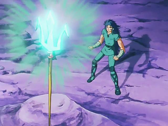 Una noche, Kanon vio una pequeña luz que sobresalía de una de las paredes de la caverna de la prisión, este abrió un agujero a través de la roca de un golpe y encuentra el luminoso Tridente que le pertenecía al dios Poseidon, pero protegido por el casi debilitado Sello de Atenea. Kanon sacó el Tridente de la roca seguido, después se abre un agujero que arrastra el agua junto con el prisionero hacia las profundidades.