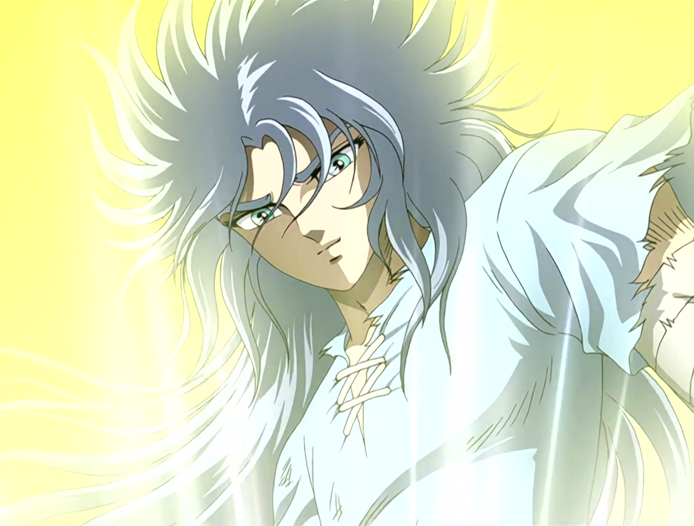 - Como Gold Saint, puede viajar y luchar a la velocidad de la luz (300,000 kilómetros por segundo) y, gracias al Gold Cloth que viste, puede soportar el frío descendente hasta los -273.15 °C, es decir, el cero absoluto.