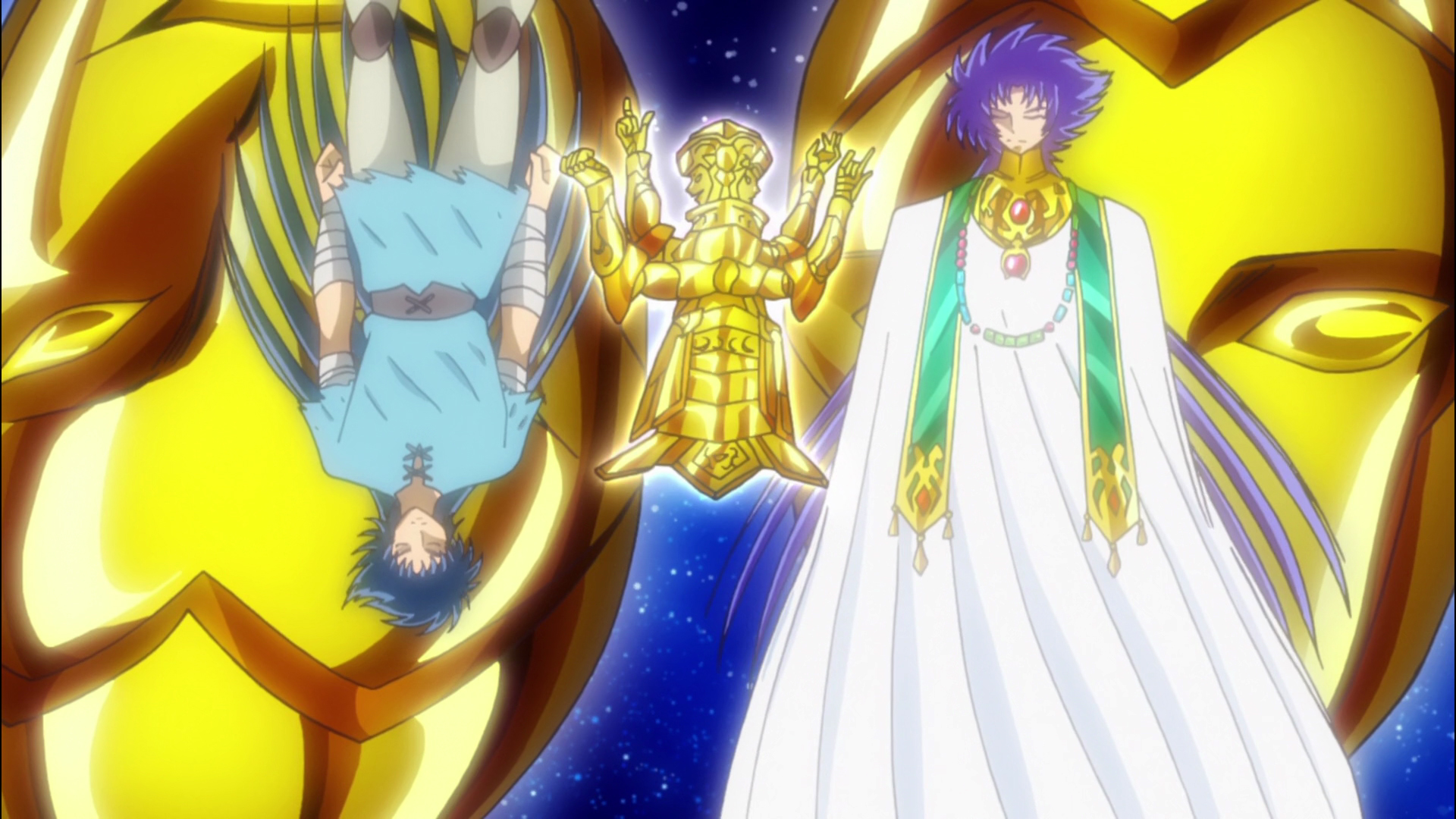 La ilusión de la Armadura Vacía de Géminis de Kanon, se enfrenta a su hermano Saga.