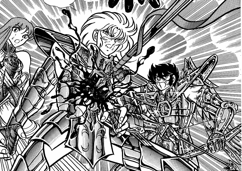 - Milo de Scorpio- Su compañero de armas quien le prueba con sus Agujas Escarlata para demostrar su lealtad y redención hacia Athena.