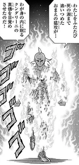 Molesto, Bellerophōn se lanza al cielo, hacia Krishna, para matarlo de una vez, pero un sereno Krishna se defiende, sin ningún problema, con su Maharoshini, repeliendo fácilmente el ataque de Bellerophōn. Esta explosión de energía sorprende a Bellerophōn quien reconoce que el Cosmos de Krishna ahora es diferente. Krishna pisa el suelo y confirma las sospechas de Bellerophōn, mientras chispas salen de su cuerpo. Krishna le comenta que debido a su Divine Onslaught estuvo al borde de la muerte, pero gracias a eso, el pudo despertar su verdadero Kundalinī, explica Krishna mientras camina y su cuerpo es envuelto por llamas azules.[4]