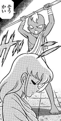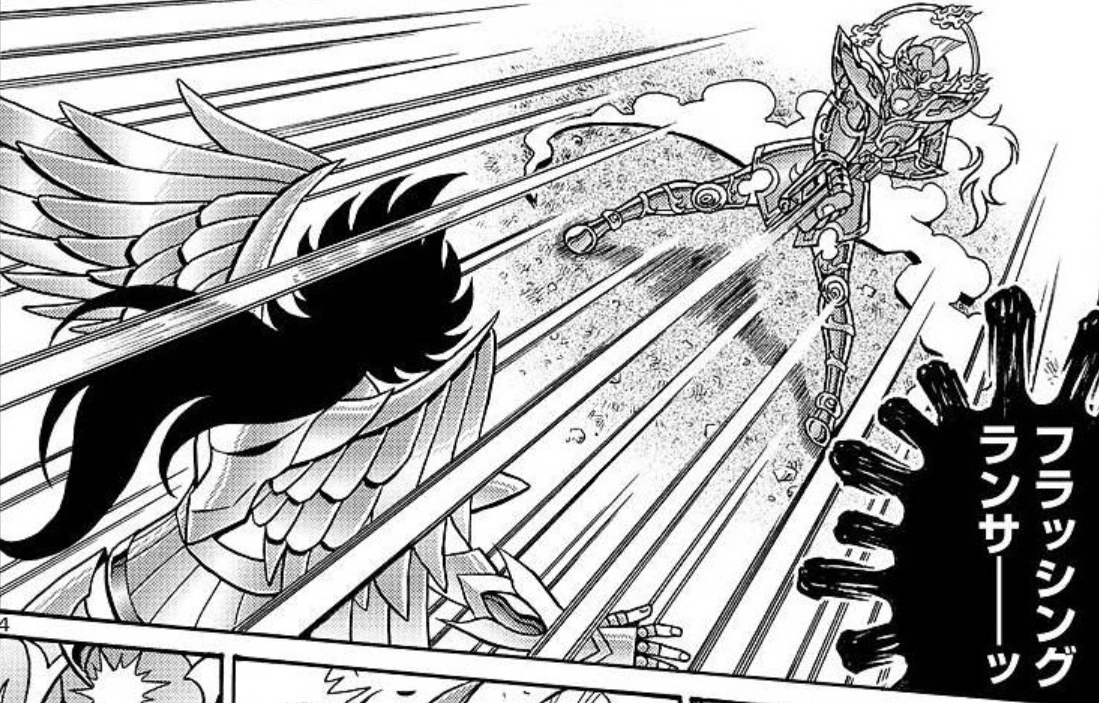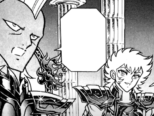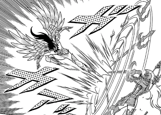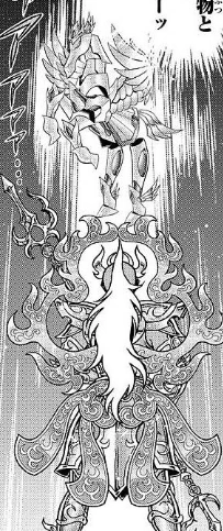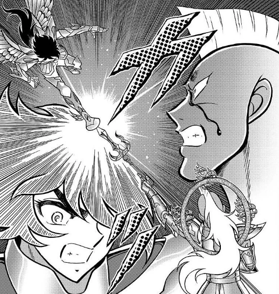 - Cuando Bellerophōn de Āris apareció para detener a los Generales, Krishna detuvo su ataque mediante el giro de su Golden Lance. Este momento puede recordar a la técnica Rolling Oar de Charon de Acheron, en el que giraba su remo para bloquear los ataques.