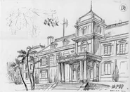 - Para la versión del Manga, Kurumada se baso en el Edificio del ReichstagW, mientras que, para la versión anime se basaron en la Mansión IwasakiW.