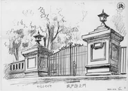 En la entrada de la Mansión Kido hay un vial pavimentado y un pequeño parking para los vehículos del servicio, muy cercano a la puerta de acceso a la mansión en el ala central flanqueada por columnas. El conjunto de la propiedad es como una especia de parque oval, con jardines rectangulares vastísimos repletos de flores cuya hierba está cortada muy baja y cuyo perímetro está rodeado de árboles, fuentes y un lago en forma de L, que incluye un pequeño bosque que rodea a la villa y los otros edificios anexos, como el edificio blanco que hospeda el planetario. Los terrenos que abarca la mansión son extensos, con muchos patios, parques, bosques, campos de flores y lagos, que evocan paz y tranquilidad.