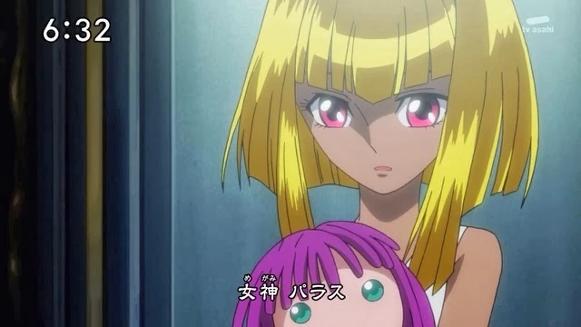 - En Saint Seiya Ω, Pallas es indicada como la diosa de la Calamidad por Seiya, Athena la define como la diosa del Amor; mientras el título del episodio 78 la llama la diosa del destino. Pallas se define a sí misma como la diosa del amor únicamente.