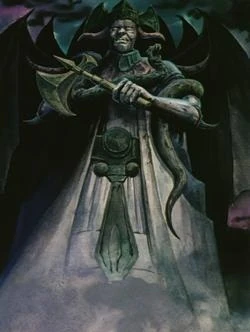 En la parte superior del Pandemonium se encuentra una gran estatua, que representa a Satánas sosteniendo en su mano izquierda un hacha de guerra, la estatua también posee en su cuerpo enrollada una serpiente, también es digno de mencionar que dicha estatua posee seis alas semejantes a las de los murciélagos, la parte superior se encuentra adornada con varias columnas.