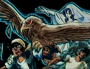 El poder del dios Hades permite que varios espíritus regresen al mundo de los vivos, los cuales tienen la apariencia de humanos con rostros desfigurados y visten con capuchas oscuras. Estos atacan a los guardias del Santuario y se enfrentan a Ichi y Nachi, que reconocen a sus oponentes como espíritus o fantasmas, ya que cuando intentan atacarles, sus puños atraviesan su cuerpo intangible. Más tarde, para sorpresa de Ichi y Nachi, aparecen más espíritus, pero en ese momento aparece Jabu y los derrota a todos utilizando el Unicorn Gallop.