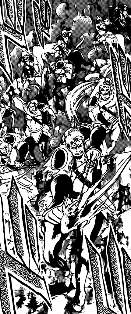 Un grupo de gladiadores es visto atacando a El Cid, pero su jefe es derrotado por el Santo de Oro utilizando una espada oxidada sin ninguna dificulta.