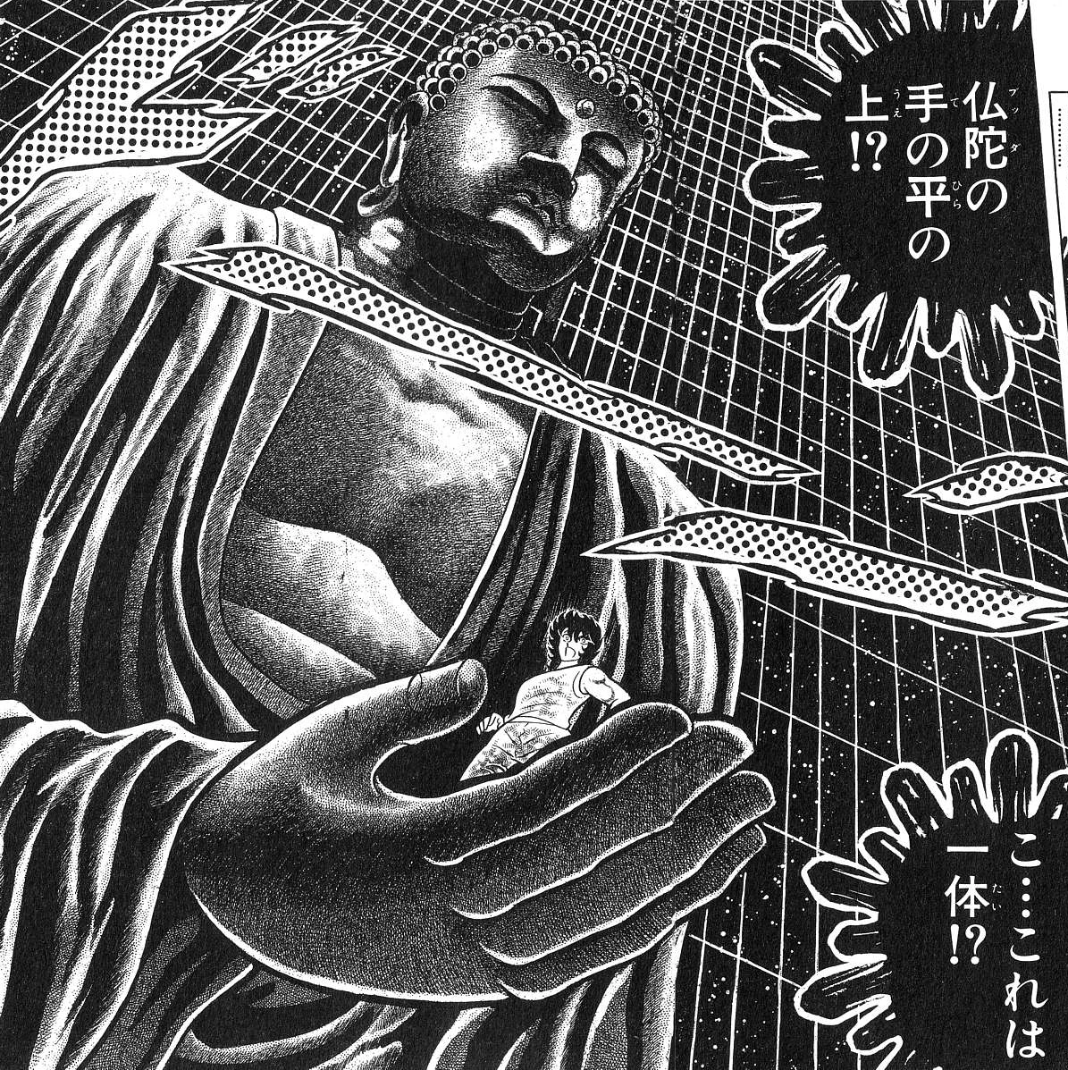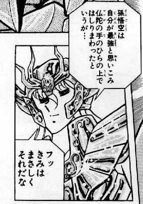 Durante la primera pelea entre Shaka e Ikki en la Isla Death Queen, Shaka hace notar la debilidad de Ikki al decirle que es como Sun Wukong, el rey mono, quien creía ser el más poderoso, pero en realidad no hacía más que dar vueltas en círculos sobre la mano de Buda. El Bronze Saint enfurece al ser comparado con un mono, pero aún así Shaka lo vence fácilmente. | |
