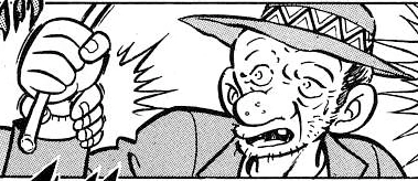 Habitante de la Isla Death Queen, aparece mientras Esmeralda e Ikki conversaban. Comienza a azotar a Esmeralda, acusándola de holgazanear y humillándola verbalmente, comparándola con cerdos y vacas, y remarcando que incluso estos animales tienen más valor que ella, a quien compró a cambio de tres bolsas de harina. Al presenciar esto, Ikki interviene, lo golpea y ayuda a Esmeralda a escapar. | |