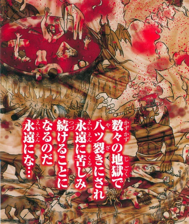 Los demonios son criaturas que habitan en el Inframundo. Son mencionados en el mapa del Inframundo, donde se describe que imparten castigos a las almas condenadas en el Quinto Malebolge de la Séptima Prisión del Inframundo. En Saint Seiya: Next Dimension, cuando el Specter de Gargoyle le explica a Suikyō que su hermano podría terminar siendo castigado en el Inframundo tras su muerte, se muestra una representación de este lugar en la que es posible observar a demonios y otras criaturas torturando a las almas de los condenados de diversas formas. | |