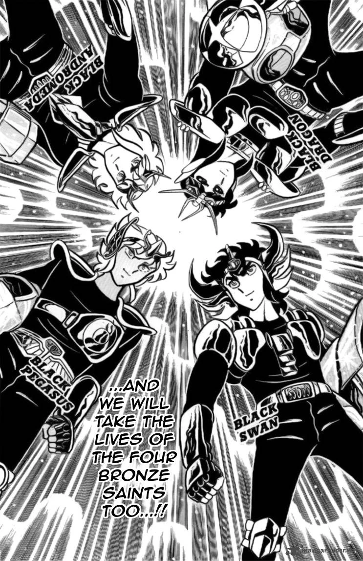 Mientras Shiryū parte a Jamir para arreglar las armaduras rotas, Shun es atacado por Cisne Negro, pero aparece Hyōga para ayudarlo. Al final Ikki organiza a cuarto Santos Negros, equivalentes a los de Bronce, para ayudarlo a cuidar la Armadura de Oro.