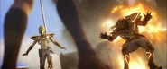 - Se asume que pudo ser un santo de plata que por ser derrotado permitirá que Harbinger llame la atención de Ionia.