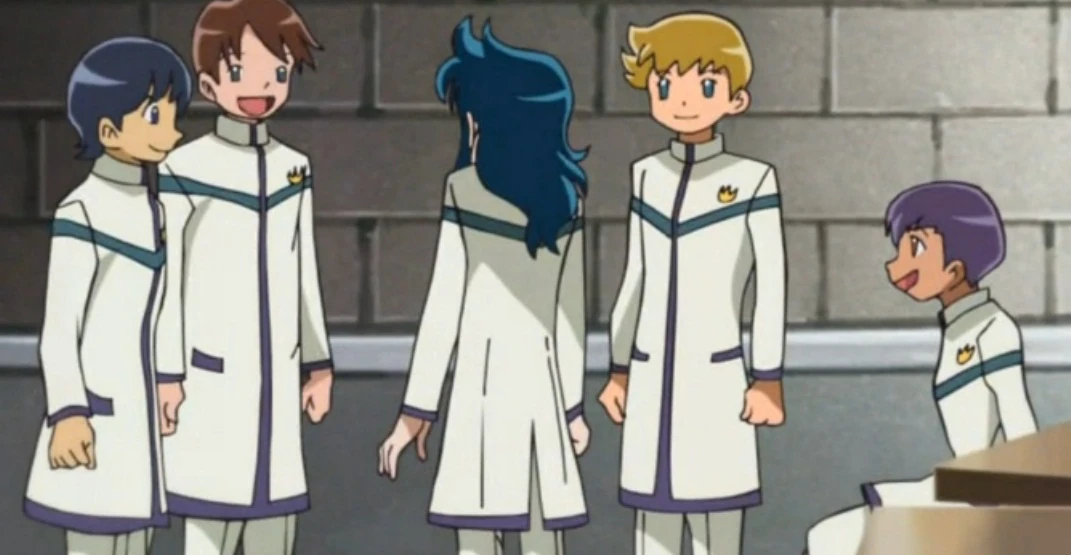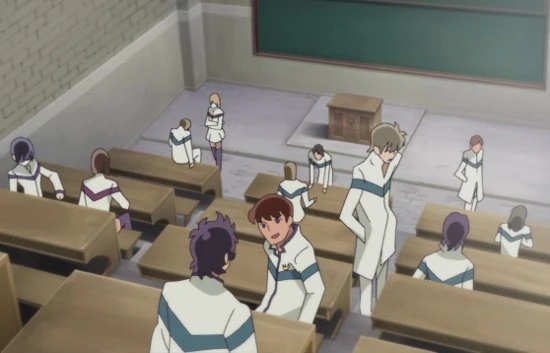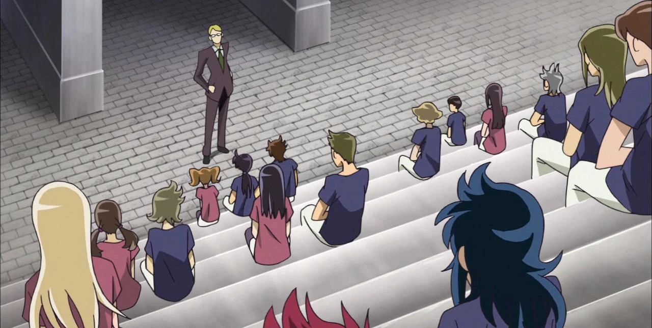 Cinco Santos de Bronce, se pueden ver tras la prueba de elementos de Ryūhō de Dragon y Mirapolos de Lince en el salón de clases.