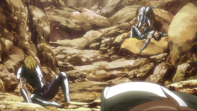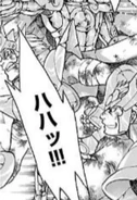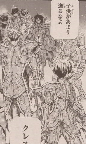 Tras la "traición" de Aiolos, el hermano menor de este es acosado por varios Soldados y por lo menos seis Sonota Saints.[1]