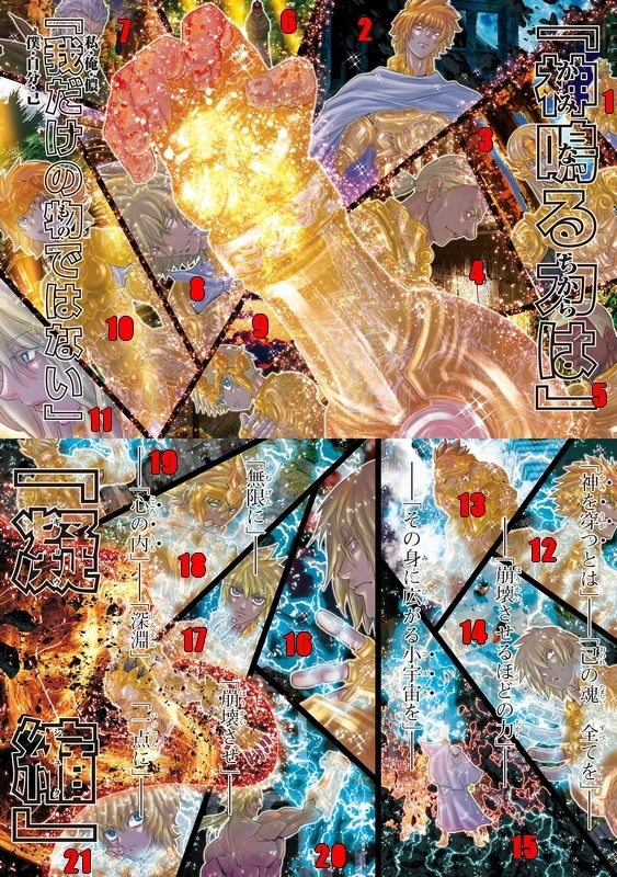 En los recuerdos de Sage de Cáncer y Hakurei de Altar recordando al anterior Santo de Aries; Avenir de Aries venido desde el futuro se logra ver además de dicho Santo de Aries y a los gemelos anteriormente mencionado, a Francisca, a Archon de Sagitta y a Fotia de Centaurus.