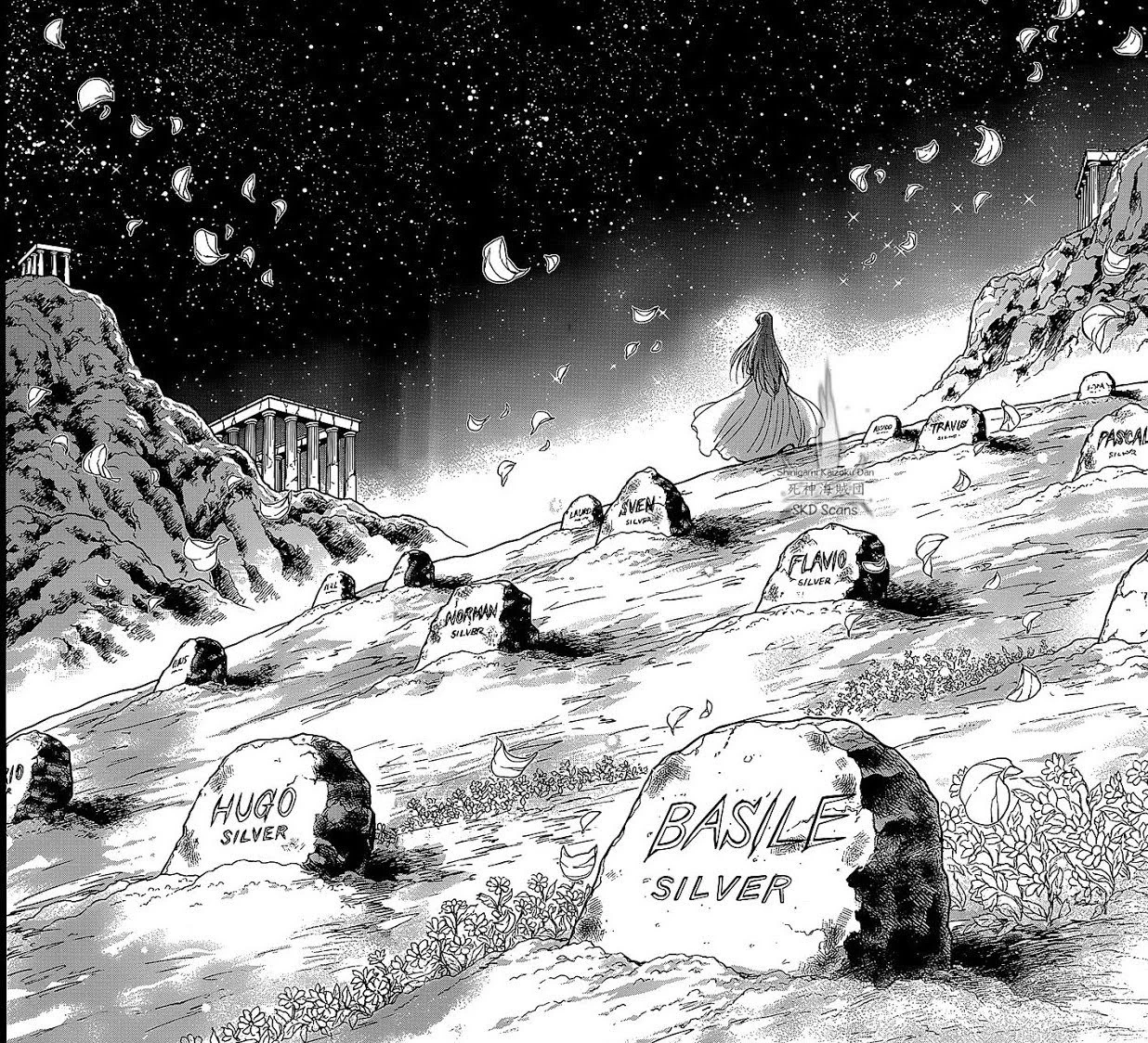 En el capítulo titulado "Pozo del Tartaro" se puede observar varias lápidas, entre ella se encuentran Silver Saints y Bronze Saints, cuya tumbas aparecen cuando Suikyo llevo a Suisho por una alta fiebre a Odysseus y este despues de despertar de un sueño de Asklepios de Ophiuchus, le da unas hiervas medicinales y para que Suikyo regresara en la misma noche. Esa noche observo a Odysseus dirigirse al cenenterio y se ven a varias tumbas de Saints, cuando Odysseus paso hacia la Zona Maldita, entre las que se encuentran los siguientes Saints.